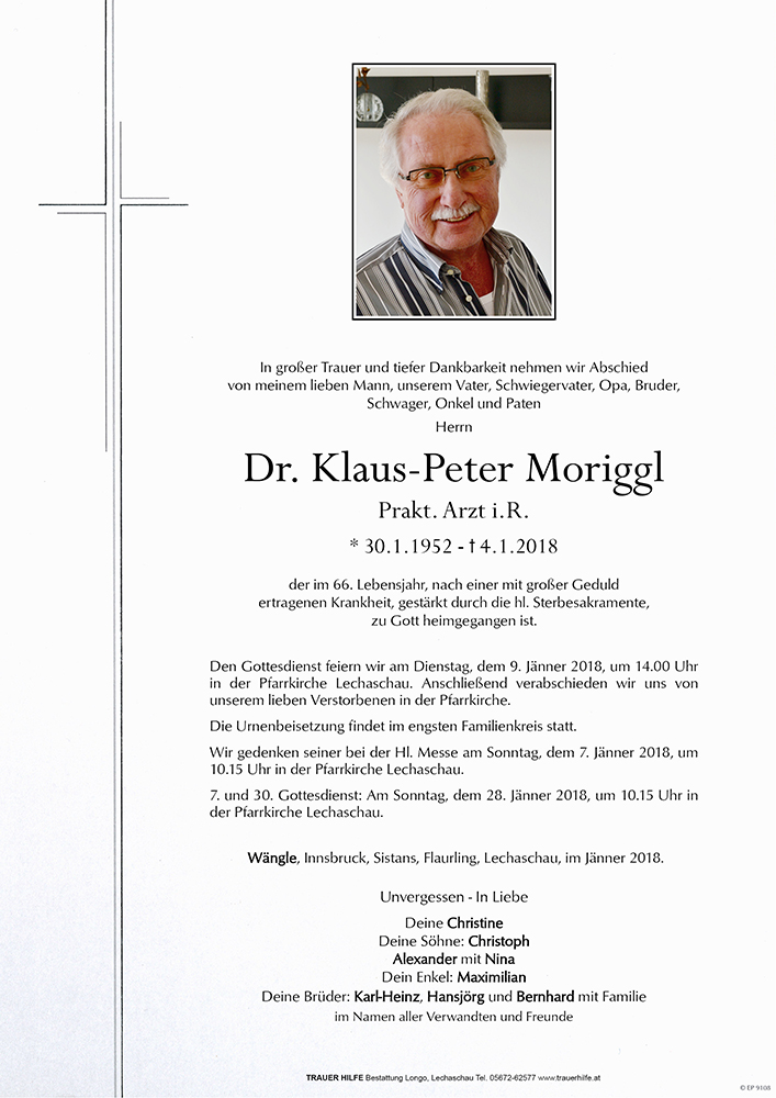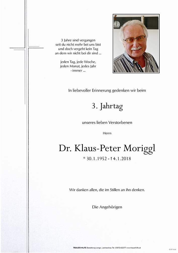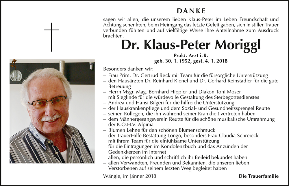 Kondolenzbuch für Klaus-Peter Moriggl