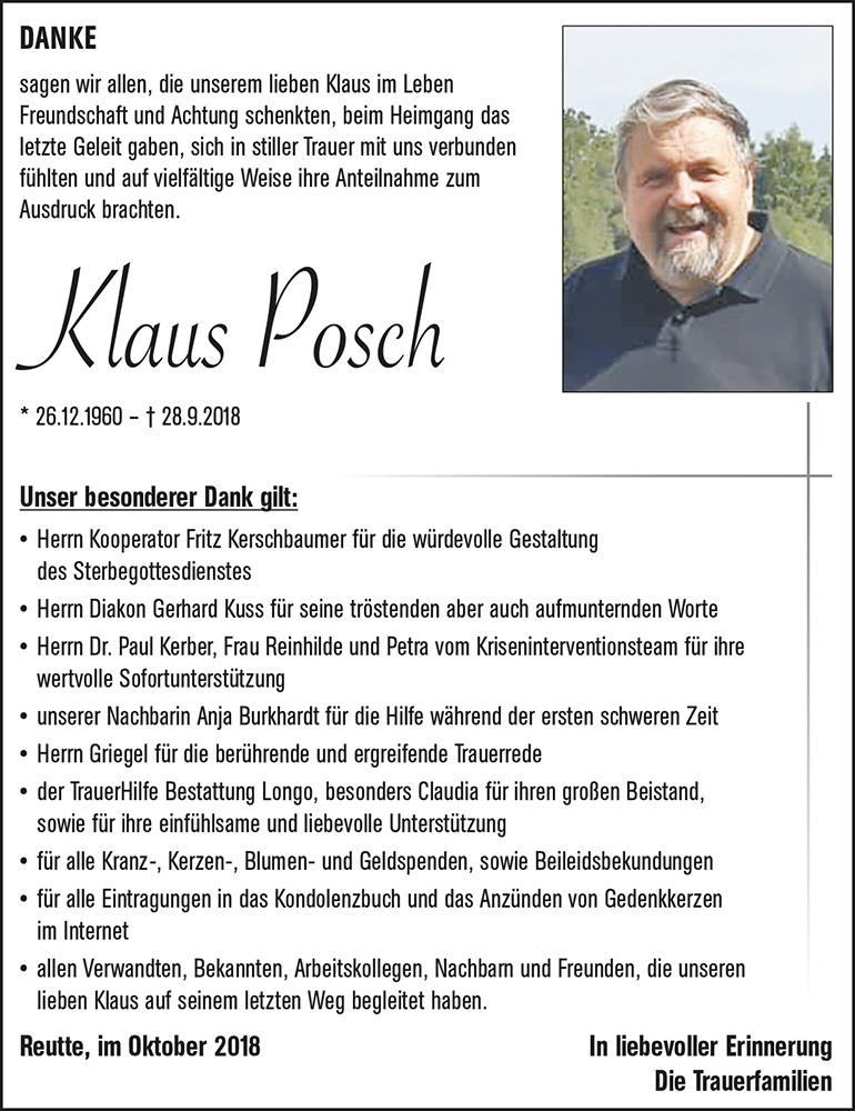 wir möchten Dir und der gesamten Trauerfamilie unser aufrichtiges Beileid zum schweren Verlust Eures lieben Klaus mitteilen.