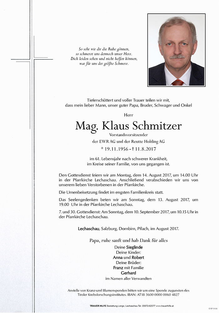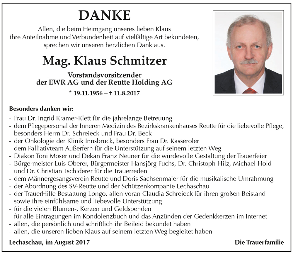 Zurück bleiben Viele mit ihrer Trauer um dich. Ich durfte einen Teil meines Weges mit dir bei PLANSEE beschreiten. Du hast erheblichen Anteil an meinem weiteren beruflichen Lebensweg. Dafür will ich dir herzlichst danken.