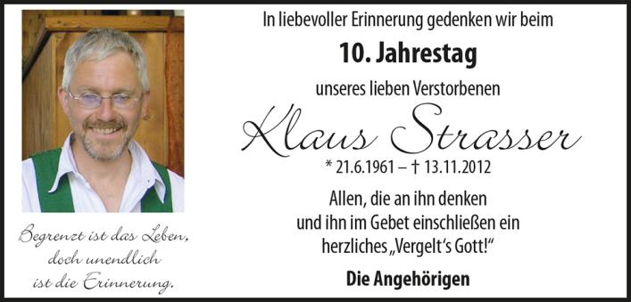 Klaus hinterlässt in eurer Familie eine große leere und sein gewohnter Platz bleibt leer und man fragt sich warum,jedoch die Antwort bleibt für immer aus.