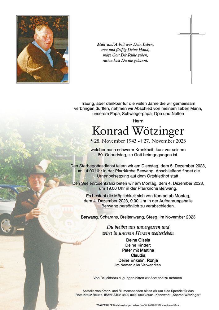 Konrad war ein treuer Kunde von uns, und wir haben ihn auch als Mitmenschen sehr geschätzt.