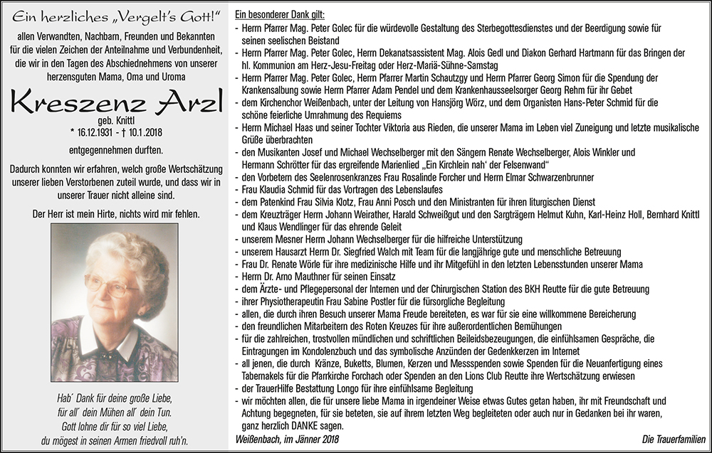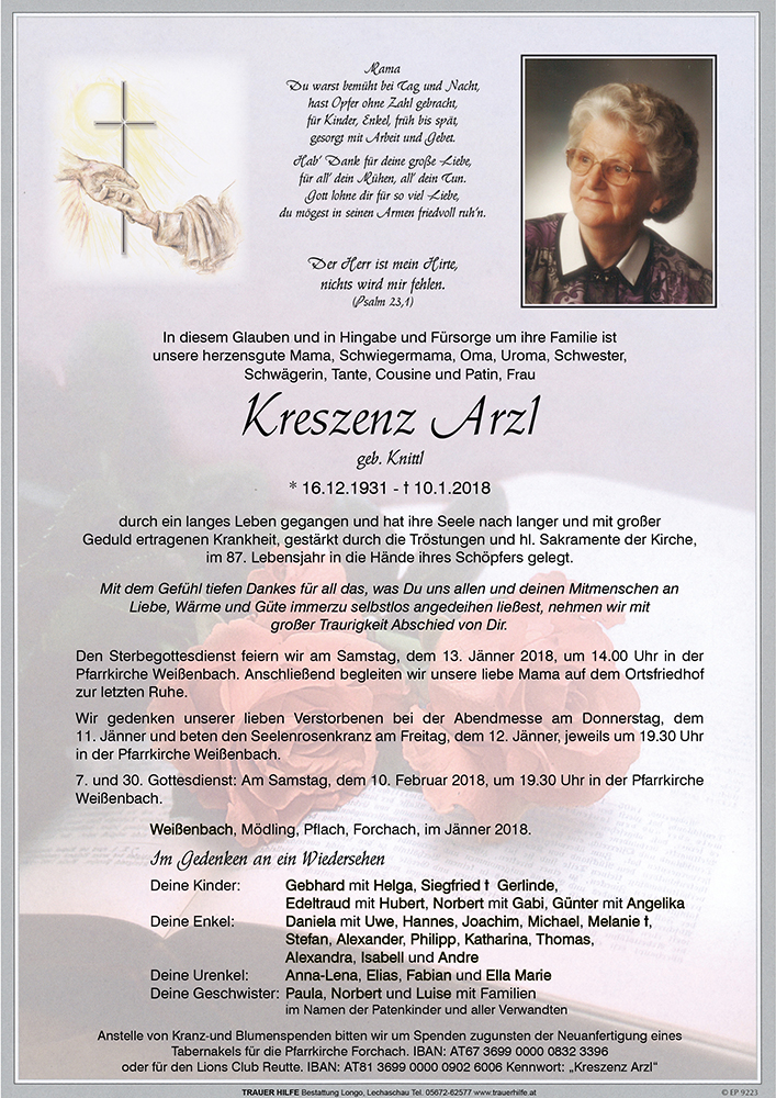 dass Eure Mutter, Oma ... von Gott gerufen wurde !