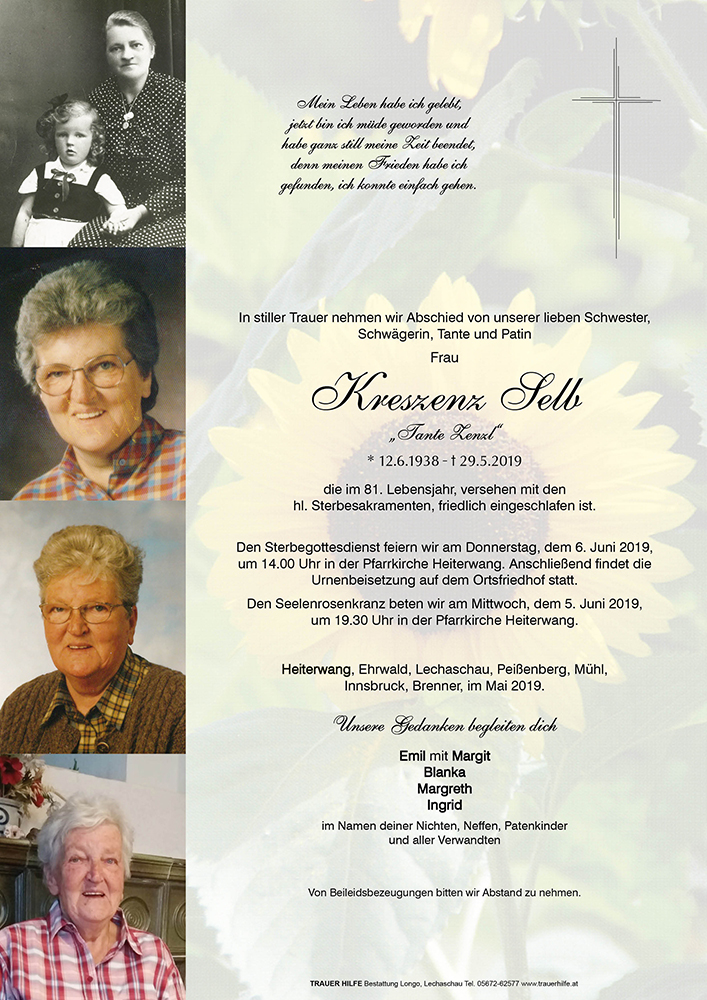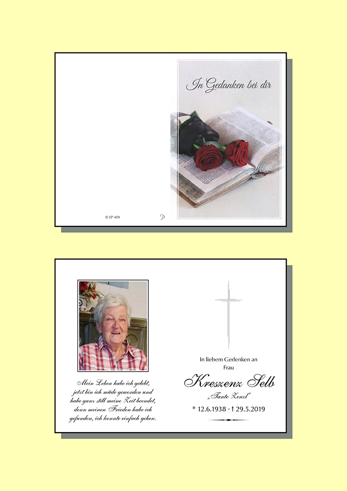 Kondolenzbuch für Kreszenz Selb
