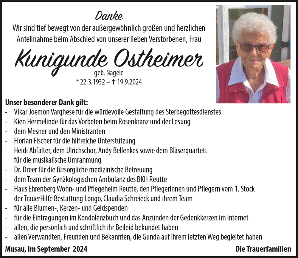 Kondolenzbuch für Kunigunde Ostheimer