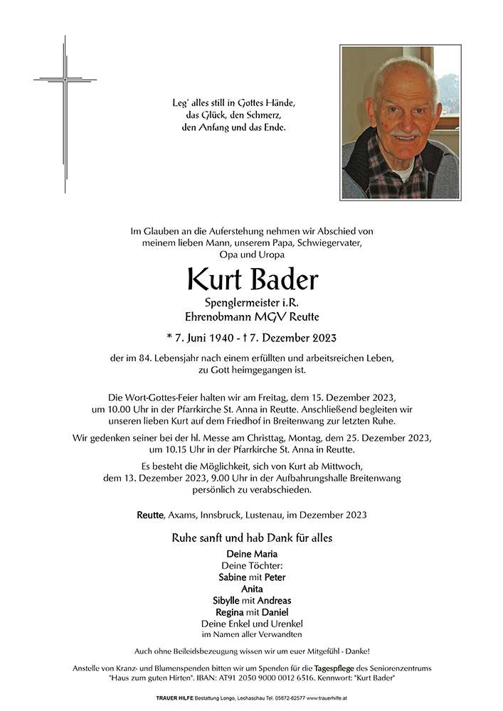 R.I.P lb. Kurt - Klaus, Petra u. Sebastian