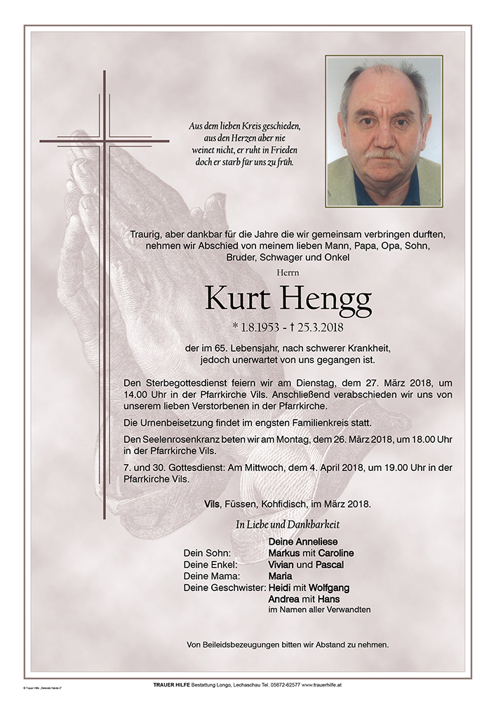Kondolenzbuch für Kurt Hengg