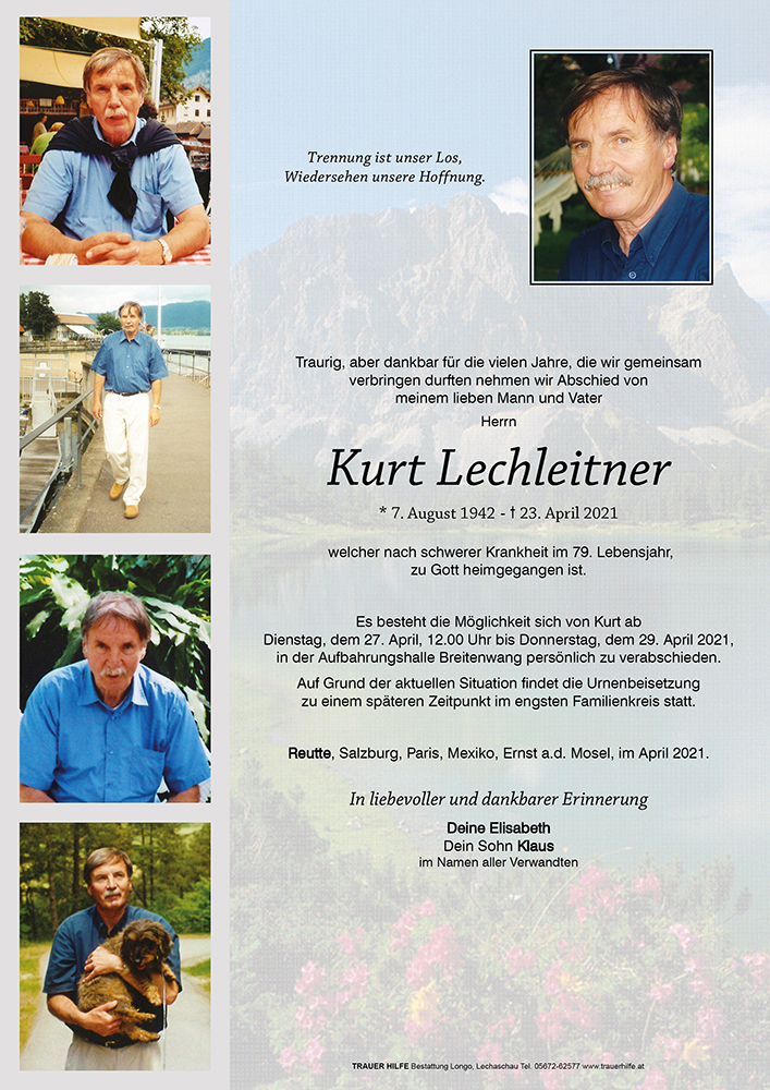 Wir werden Kurt in lieber Erinnerung behalten und wünschen Euch viel Kraft in dieser schweren Zeit.