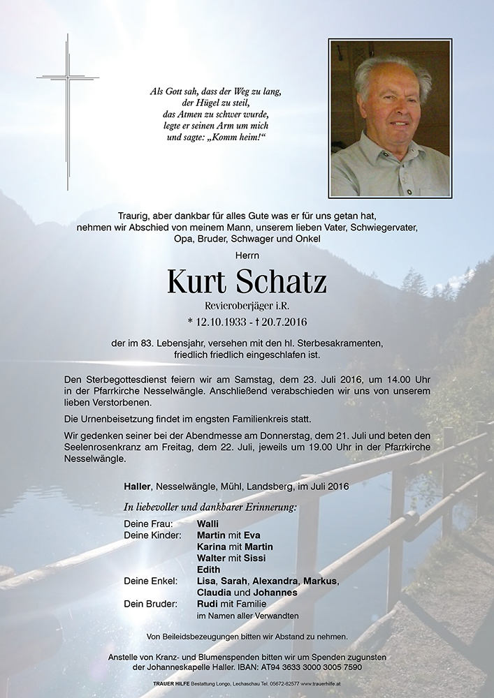 aufrichtige Anteilnahme am Heimgang Eures Vaters und Großvaters entbietet