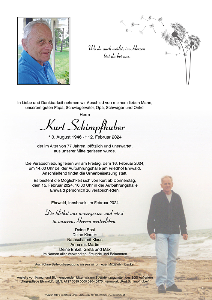 Kondolenzbuch für Kurt Schimpfhuber