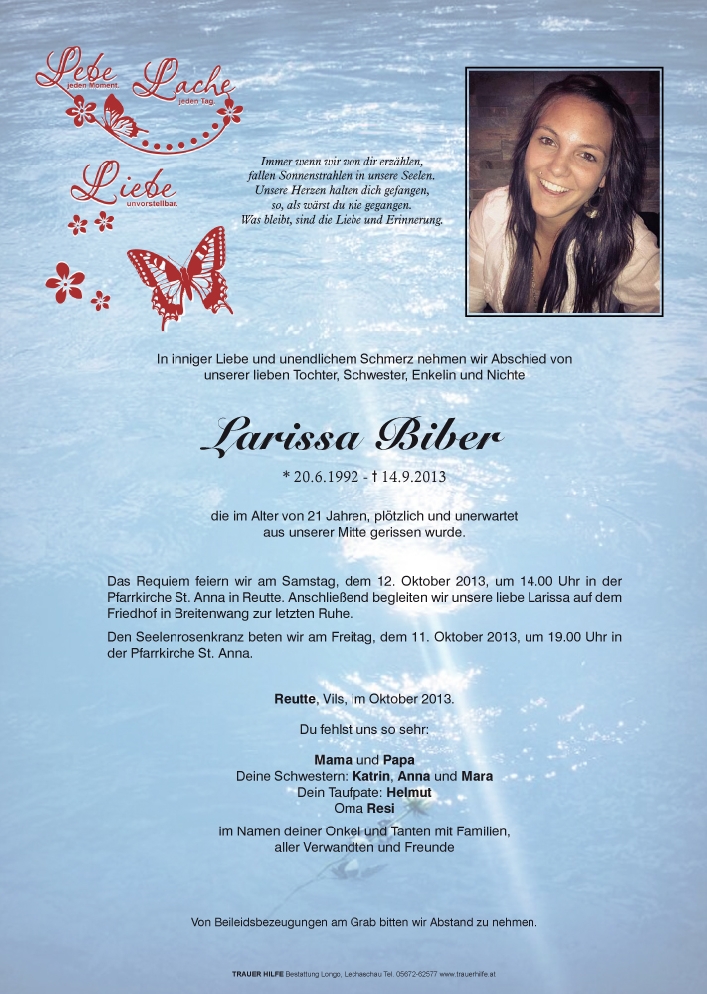Kondolenzbuch für Larissa Biber