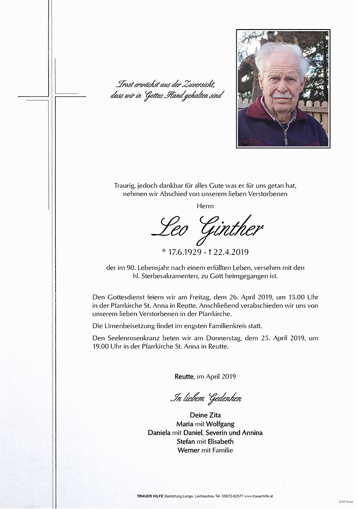 Kondolenzbuch für Leo Ginther