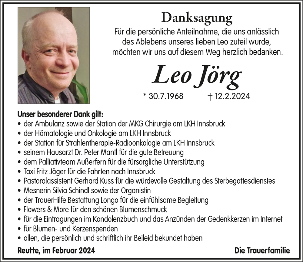 Kondolenzbuch für Leo Jörg