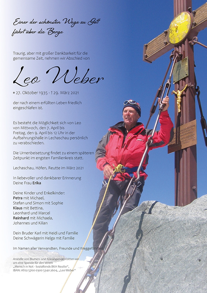 Der Segelflugverein Außerfern hat mit Leo Weber ein sehr wertvolles Mitglied, geprägt von Fleiß, Aufrichtigkeit und viel Humor verloren, seine einzigartigen Sprüche werden unvergesslich bleiben!