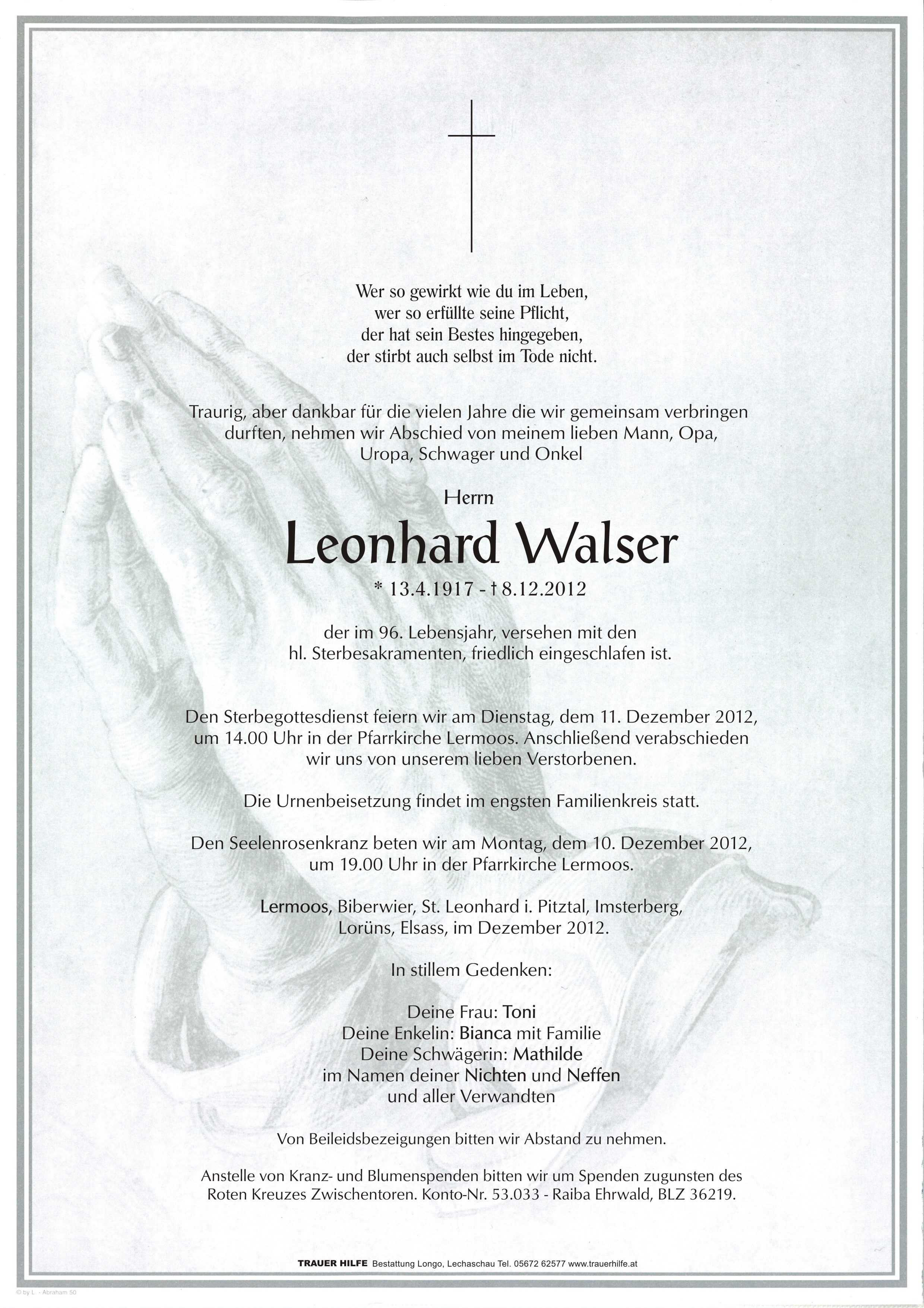Wir möchten Dir auf diesem Weg unser herzlichstest Beileid zum Verlust von Leo ausdrücken. Wir haben Leo sehr gerne gehabt und ihn sehr geschätzt und werden ihm stets ein ehrendes Andenken bewahren.
