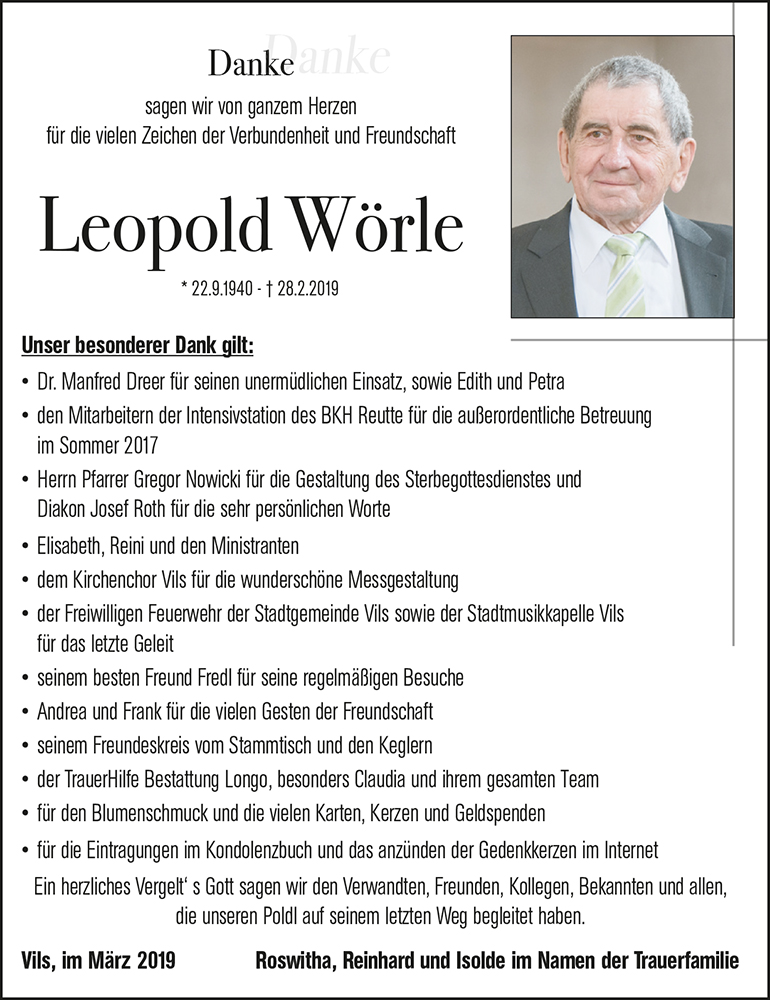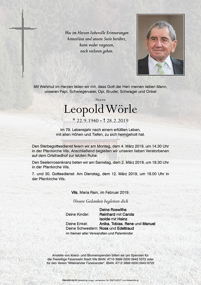Kondolenzbuch für Leopold Wörle