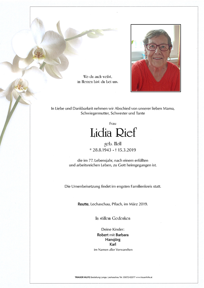 Aufrichtige Anteilnahme entbietet Fam. Karl & Maria Pellegrini