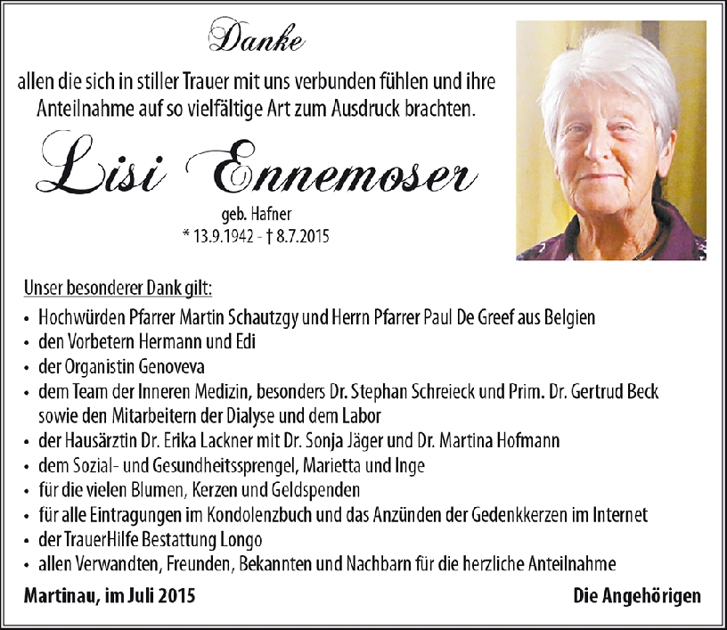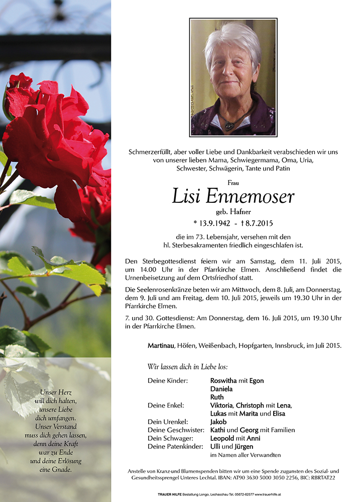 Kondolenzbuch für Lisi Ennemoser