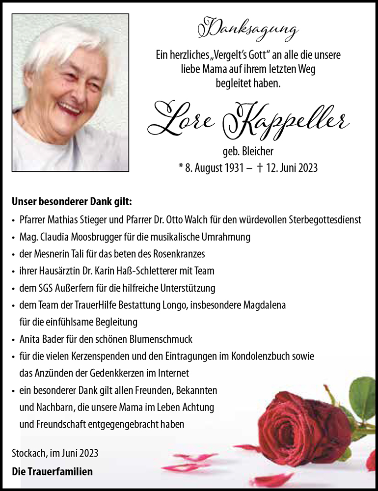 Kondolenzbuch fĂŒr Lore Kappeller