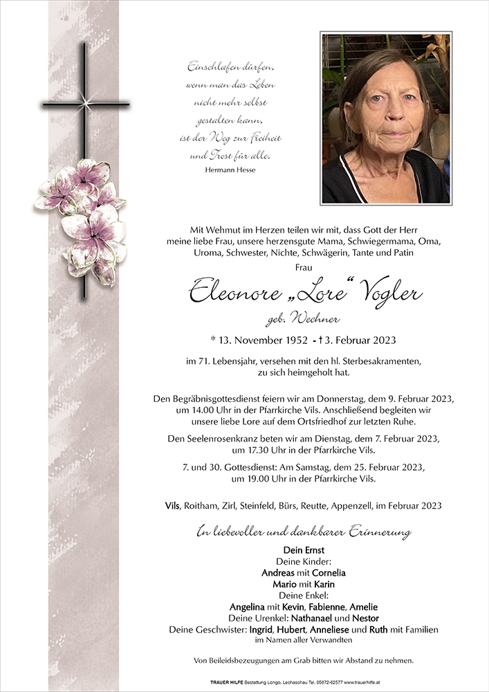 Kondolenzbuch für Lore Vogler