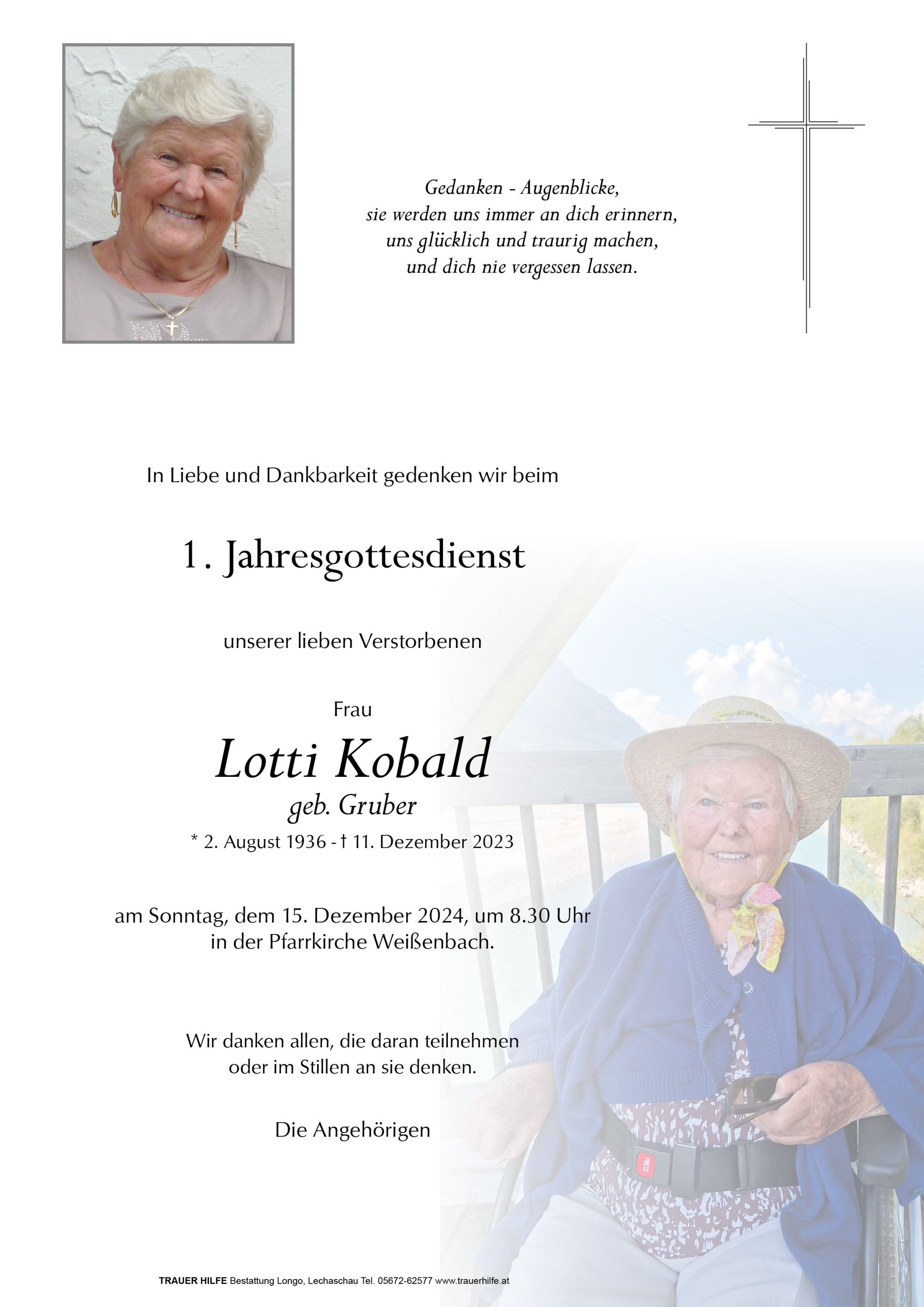 mit Lotti verlieren wir einen herzensguten Menschen, deren nettes Lächeln und Humor uns noch lange in Erinnerung bleiben wird. Trotz ihrer Einschränkungen haben wir nie Wort der Klage erfahren. Sie hat tapfer gekämpft und wurde nun mit offenen Armen in Gottes Obhut aufgenommen. Wir wünschen Euch allen viel Energie, Zeit und Geduld, um diesen schmerzlichen Verlust zu verarbeiten.