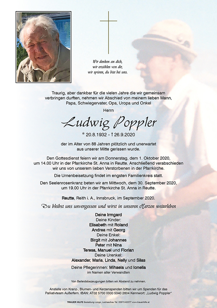 Aufrichtiges Beileid entbietet der Pensionistenverband OG Reutte