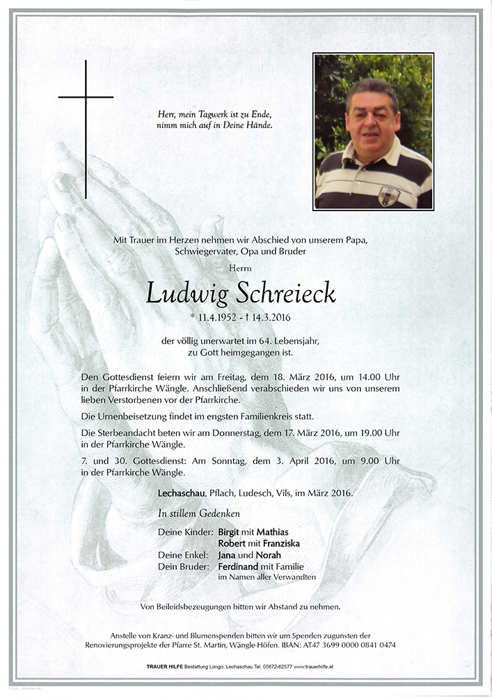Kondolenzbuch für Ludwig Schreieck