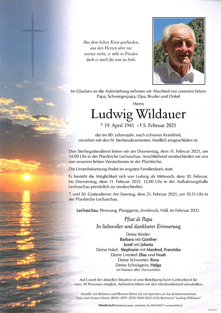 zum Tod von Ludwig trauern wie mit Euch. Wir spenden Trost für den schweren Verlust aber auch Freude, die Ihr bei Erinnerungen an viele schöne Zeiten haben werdet.