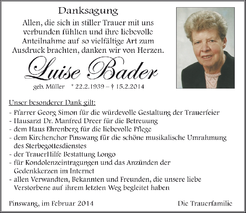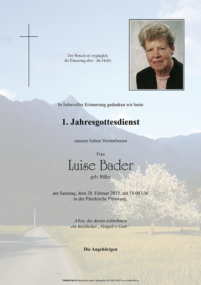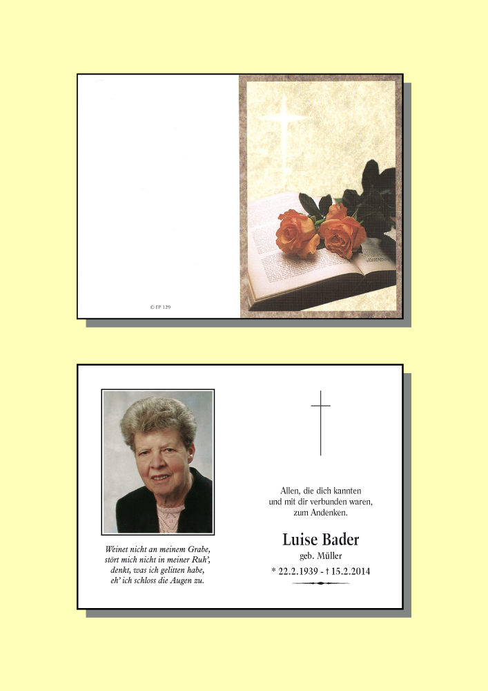 Kondolenzbuch für Luise Bader