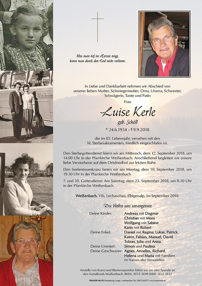 zum Heimgang eurer Mutter und Oma möchte ich euch meine aufrichtige Anteilnahme und Mitgefühl ausdrücken. Mögen euch die schönen Erinnerungen Trost sein, in dieser schweren Zeit.