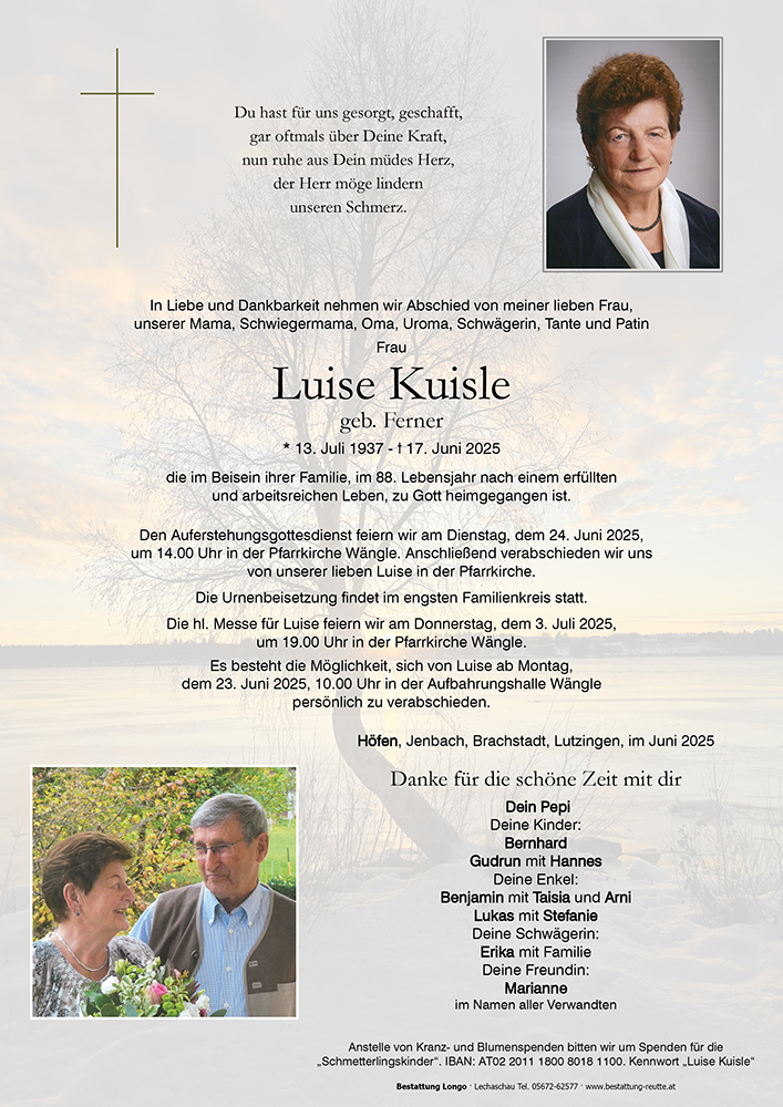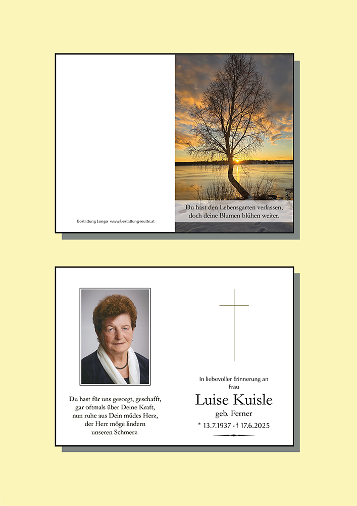 In tiefer Betroffenheit habe ich vom Tode deiner Mutter Luise erfahren.