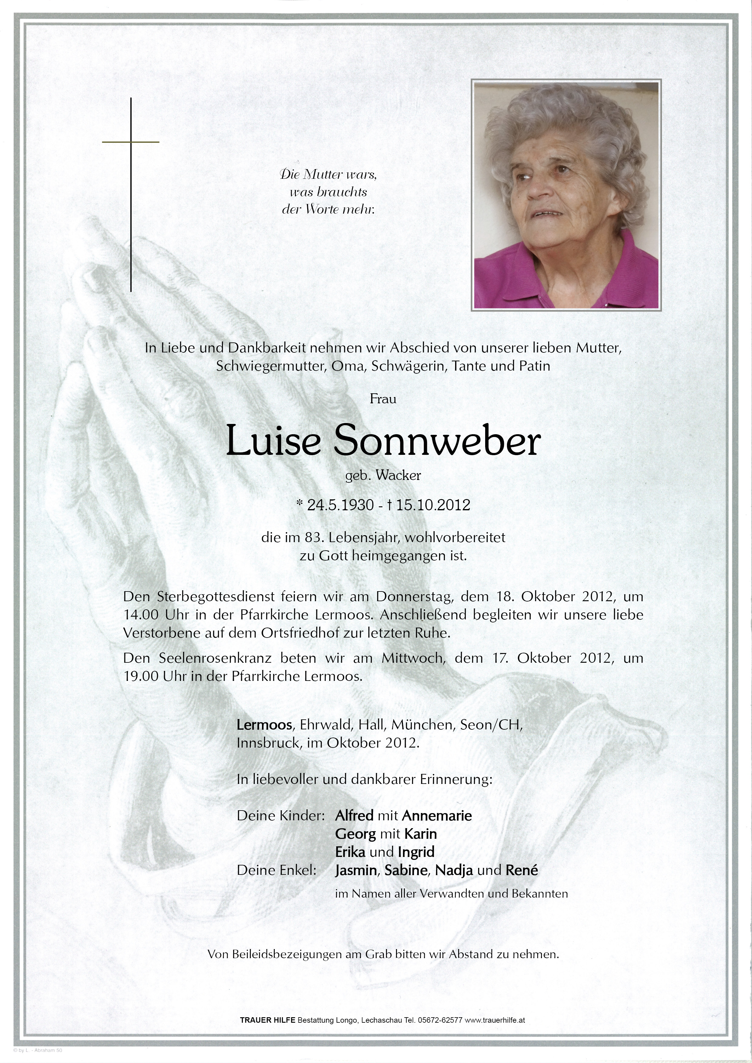 Kondolenzbuch für Luise Sonnweber