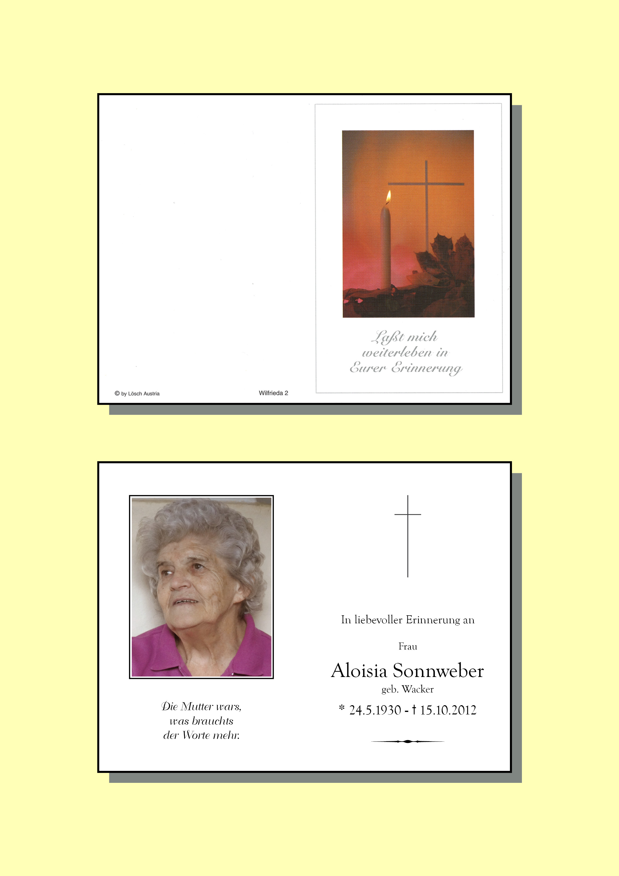 Gedenkkerzen für Luise Sonnweber