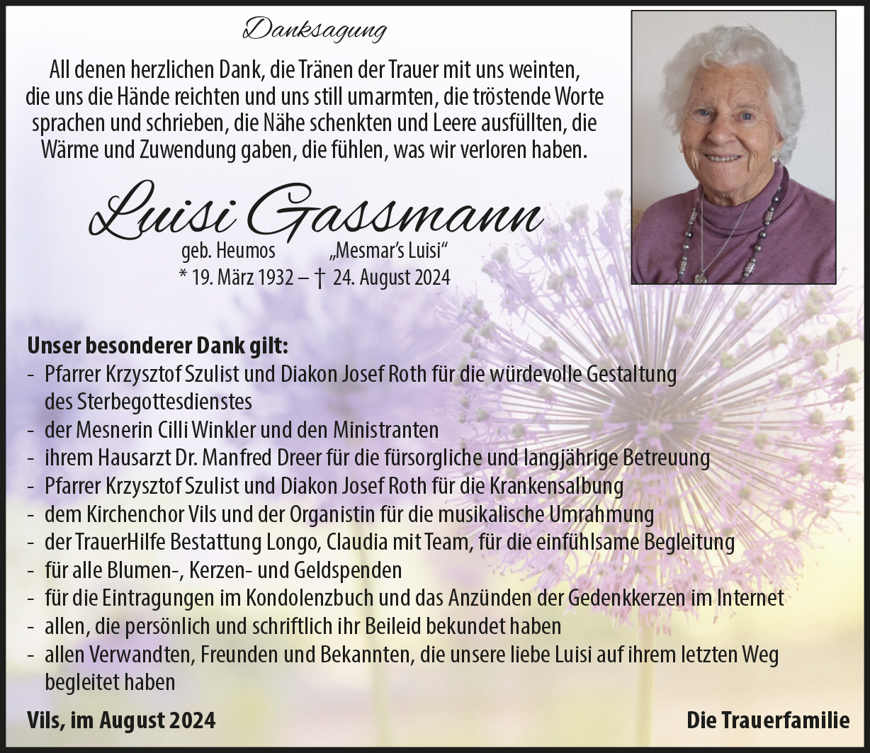Kondolenzbuch für Luisi Gassmann