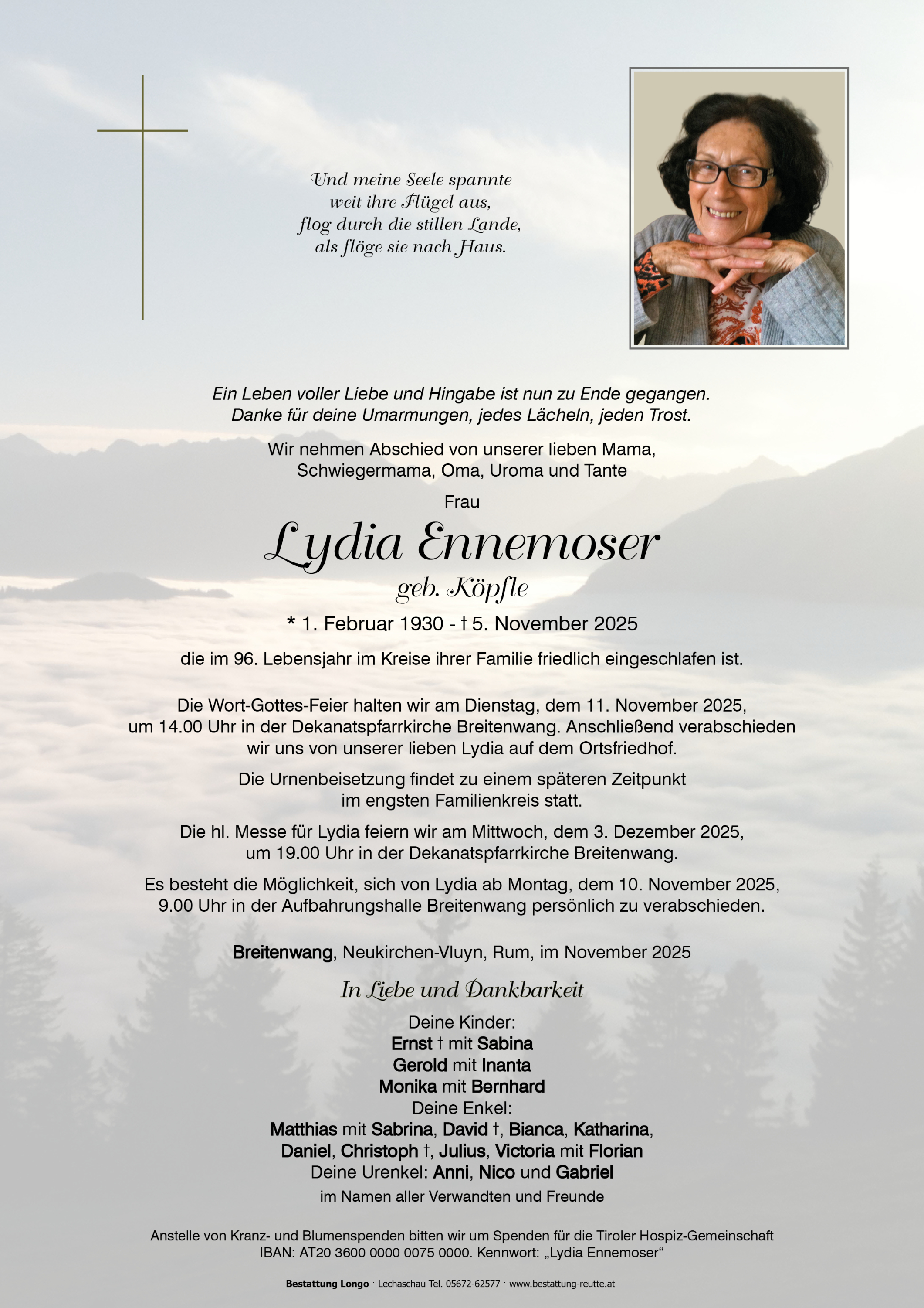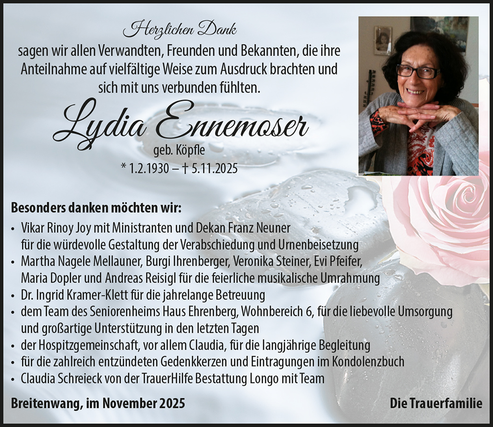 Kondolenzbuch für Lydia Ennemoser