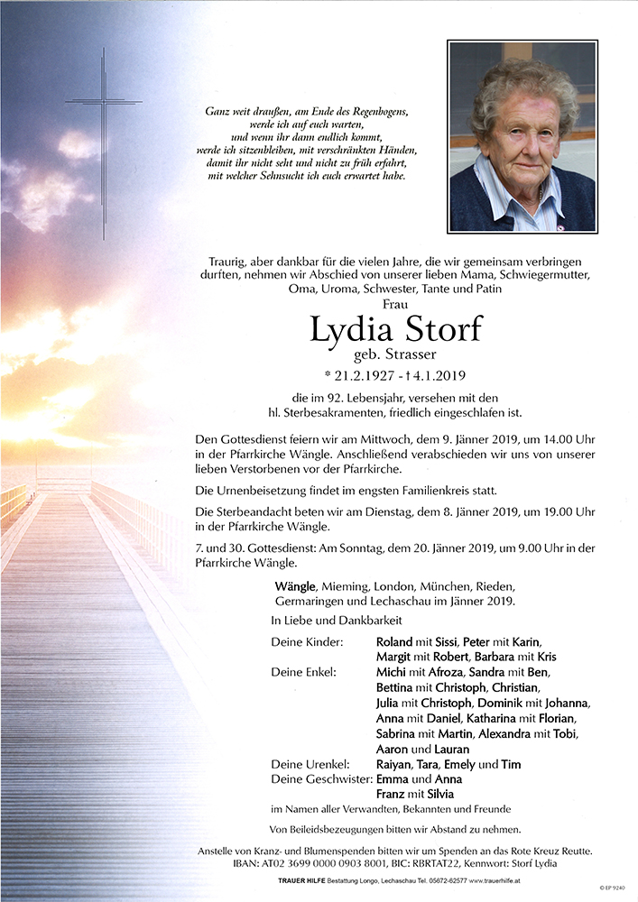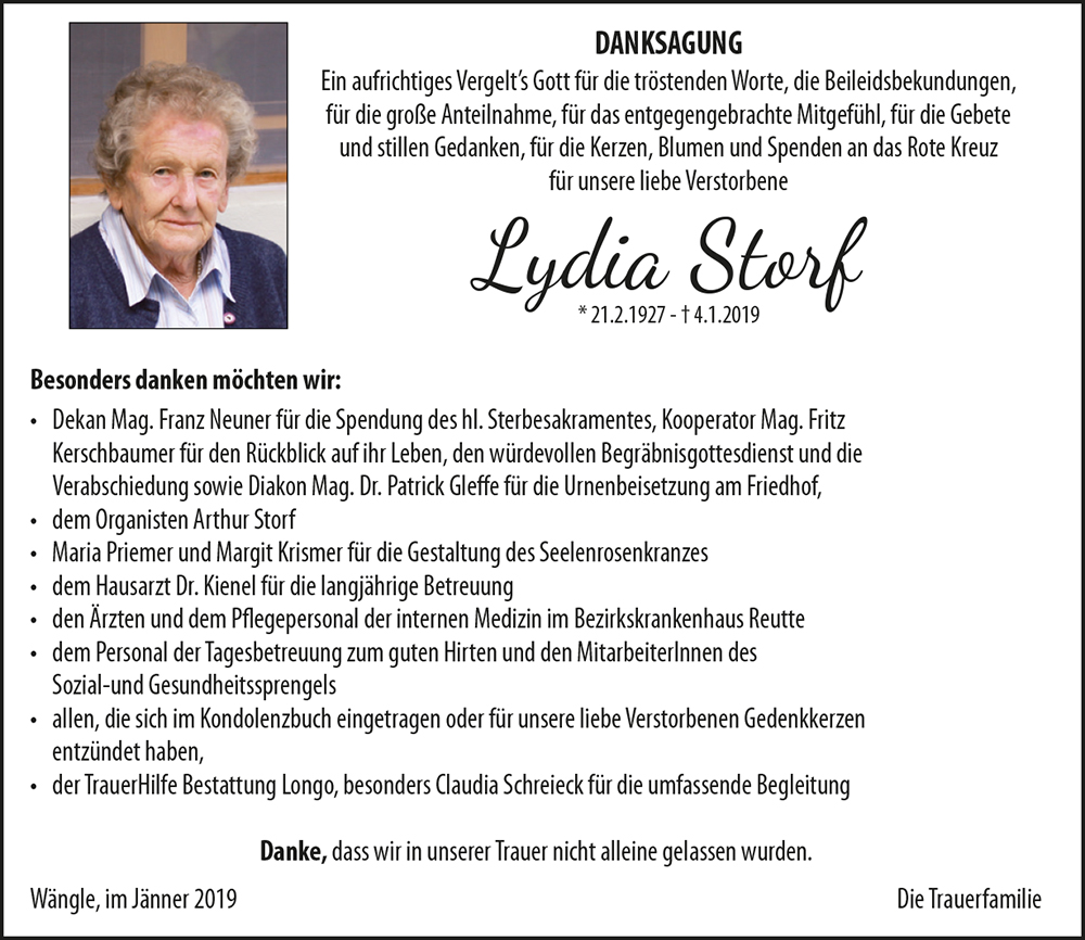 Kondolenzbuch für Lydia Storf