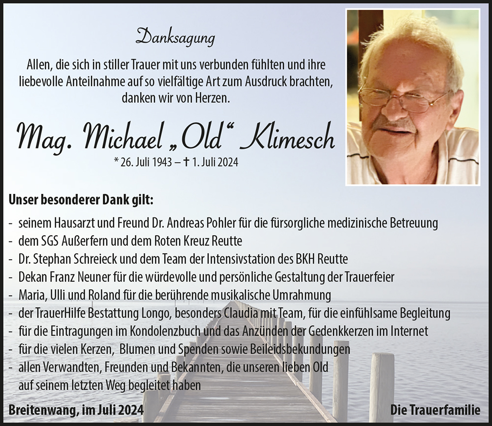 In tiefer Betroffenheit haben wir vom plötzlichen Tode unseres ehemaligen Kollegen Mag. Michael Klimesch erfahren.
