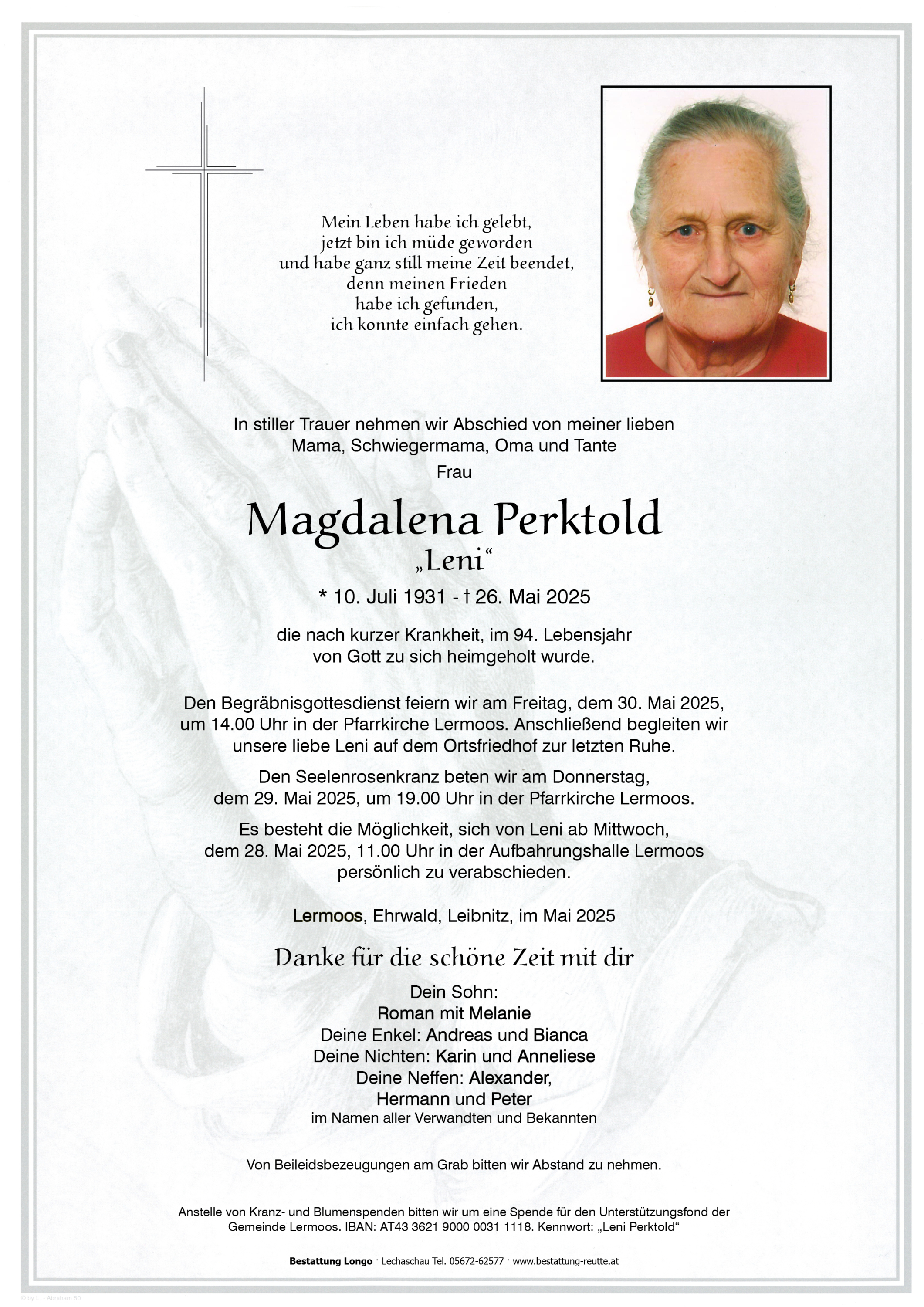 Kondolenzbuch für Magdalena "Leni" Perktold
