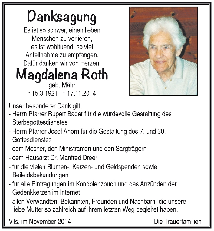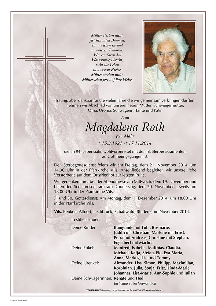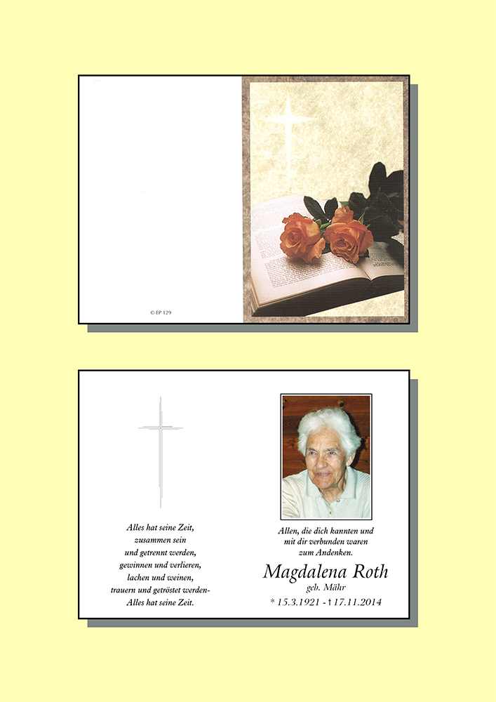 Kondolenzbuch für Magdalena Roth