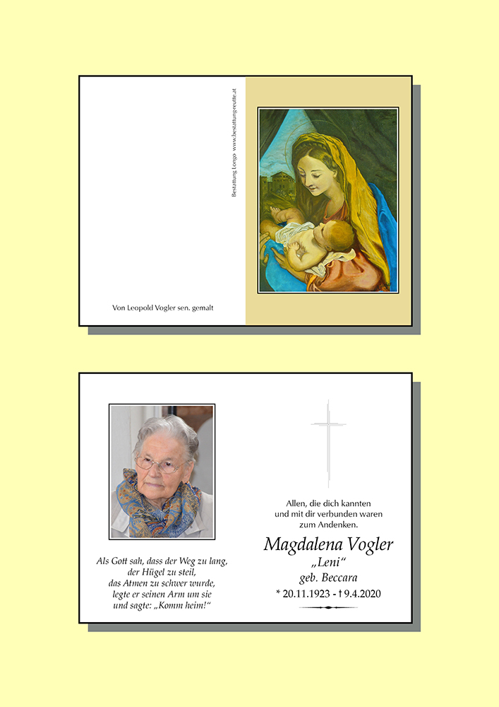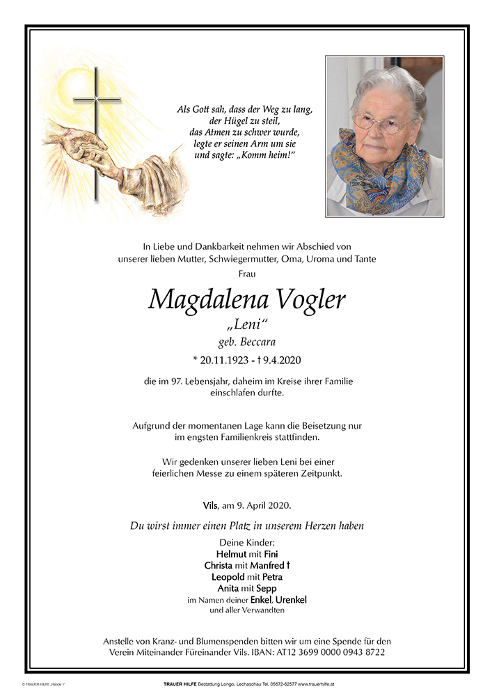 Kondolenzbuch für Magdalena Vogler