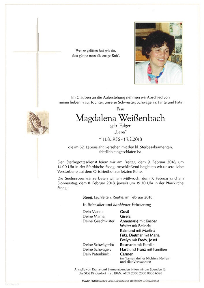 Kondolenzbuch für Magdalena Weißenbach