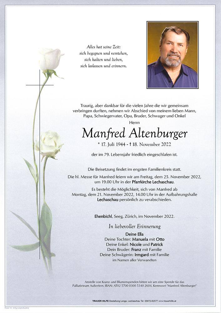 17.07.1944 18.11.2022 Ehenbichl Manfred Altenburger Action Parte Sterbebild Gedenkkerzen Kondolenzen Danksagung Parte Sterbebild Gedenkkerzen Kondolenzen Danksagung Parte herunterladen Sterbebild herunterladen Gedenkkerzen für Manfred Altenburger 167 Einträge Kerze anzünden Elmar Ein LICHT für die EWIGKEIT!✨️ a Liachtl für di ... Ein Licht für Dich Elmar Zum deinem Jahrtrag ? RIP. Werner und Karin Kößler ?? Sonnweber Helene ehem. Arbeitsk. Weiße Zum deinem Jahrtrag ? In lieber Erinnerung Dein Enkel Patrick In lieber Erinnerung Deine Enkelin Nicole In lieber Erinnerung D. Tochter Manu mit Otto In Liebe Deine Ella R.I.P. Fam. Pepi & Evi Luttinger Charlotte Wörle Herzliche Anteilnahme - Dieter Zingerle Ein Licht für Dich Markus, Martina, Patrick u. Fabian Wolf Oswald Gärtner Fam. Christoph Salvenmoser Fam. Fritzi und Helmut Gassler Angelika Schmid - Galic ✨ Franz Morandell mit Familie RIP. Werner und Karin Kößler ?? Ernst J. Messmer & Kirsten (Kufstein) Anja Fam.Max.und Angela Kerber Fam.Königsrainer Karlheinz u.Manuela Fam. Franz und Elisabeth Ginther Norbert Beirer Simon Schöll Fam. Klaus und Ingrid Schennach Frieda Lorenz Peter Lorenz mit Familie Familie Thomas &Nicole Hofherr Fam.Gitti u Sepp Schöffmann Fam. Franz, Gerda und Linda Habicher Renate Heinz (Winkler) Helmut Hornstein R.I.P. Fam. Pepi & Evi Luttinger Reinstadler Lothar Bernd Jochum Barbara Huber Ruhe in Frieden ! Julia vom Dorfladen Fam. Johannes Ginther und Tamara Perl Fam. Elisabeth & Uwe Kerle Helga Rizzoli Werner Scherer Luisi Scherer Fam. Berwanger Walter Petra u.Heinz Steinhart- Häsele Käthe Thurner mit Fam. Familie Reinhard & Regina Eberle Fam. Josef u. Elisabeth Jochum Helga Singer Rid Johannes & Karin mit Matthias und Lukas Bärbel und Walter Hosp Familie Klaus Scheiber Verena & Oskar Palliativteam Außerfern Herbert u. Elisabeth Brutscher Margarete u. Emmerich Lutz Barbara u. Klaus Wechselberger Gertrud und Stefan Brüggl Johannes Storf Elisabeth u Andreas mit Kindern Gustl Ihrenberger In lb. ERobert & Marlen Schweiger Hinterbichl Mario u. Barbara Rief Fam . Günther Haberl Manfred Haas Fam. Bruno und Brigitte Reinstadler Markus Meier Andrea & Markus Schretter Fam. Annelies und Sepp Paulweber Brigitte Fuchs Schweißgut Angela Fam. Christl und Rudi Ginther Eugen Winkler sen. Fam. Heribert & Anni Bailom Walter Lorenz REINHARD BERTLMANN Fam. Hannes Gstir Dein ehem. Arbeitsk. Dietmar Ruhe in Frieden In Liebe Deine Ella In lieber Erinnerung Dein Enkel Patrick In lieber Erinnerung Dein Enkel Patrick In lieber Erinnerung Deine Enkelin Nicole In lieber Erinnerung Deine Enkelin Nicole In lieber Erinnerung Dein Schwiegersohn Otto In lieber Erinnerung Deine Tochter Manuela Schlaffer Elisabeth, ruhe in Frieden Dein ehem. Arbeitsk. Winkler Helmut Helene Weißenbach Deine ehemalige Arbeitskollegin Sonnweber Hel Reit und Fahrverein Breitenwang/Reutte Heinz und Stefan Zeller Wolfgang Hosp Lechaschau/Pfronten Margot Wex Müller Brigitte mit Familie ✨ Fam. Manfred und Beatrix Kerber Robert Zitt Manfred Lettenbichler Ginther Maria Fam. Gruber Ehenbichl Irmgard u. Luis Hedi und Edwin Georg Strasser Fam. Paul Kaiser Sven und Anneliese Beinstingl Familie Anton Specht Familie Reinhold Sprenger Fam. Klaus und Sabine Raunegger Sandra und Marco Steinböck Caroline Ginther Fam. Martin u Raphaela Schweißgut Team des SGS Außerfern Edi Ammann Für dich und deine Familie Fam.Kecht Manfred Christine Plosinjak m.Fam Adele und Paul Strolz Elke u. Peter Oberthanner Barbara und Heinz vom Kreuz in Rieden Edeltraud Tiefenbrunn(Maier) Markus und Birgit mit Hannah monika-norbert philipp Fam. Sabine Hosp-Althaller Christiane Ginther Silvia und Elmar Erich Sprenger Ruhe in Frieden Fam. Peter Hohenrainer Fam. Bernhard & Sabine Storf Marion, Günter, Manuel und Lea Paul, Vroni u, Christoph Barbist Martin und Yvonne Fam.Stefan Beirer Brigitte und Raimund Falger Doris Mages Ruth Isenburg Ein Licht für deine Reise ? Ein Licht für deine Reise ? Ein Licht für deine Reise ? Ein Licht für deine Reise ? Ein Licht für deine Reise ? Ein Licht für deine Reise ? Ein Licht für deine Reise ? Ein Licht für deine Reise ? Ein Licht für deine Reise ? Doris Wex und Romana Ginther Fam. Fritz Kaufmann Gute Reise Birgit Christoph Hosp Fam. Oskar u. Marlies Ginther Fam. Paul Meier Sonja Rudolf Fam. Karin & Patrick Babl Karin und Herbert Ronacher Fam. Altadonna Manfred u. Uschi Megele Fam. MOOSBRUGGER Günther Longo Deine Frau Ella Carmen Helmer Claudia Schreieck TrauerHilfe Bestattung Longo Ihre Gedenkkerze fürManfred Altenburger Ihr Name* Farbe auswählen Ihre Nachricht oder Name* E-Mail-Adresse* Mit dem Klicken auf "Kerze anzünden" erklären Sie sich mit unseren Datenschutzbestimmungen einverstanden. Kondolenzbuch für Manfred Altenburger 1 Eintrag Kondolenz verfassen Aufrichtige Anteilnahme entbietet Das Team der Dorfbäckerei Laden Ehenbichl Waltraud Umshaus 21.11.2022 um 13:46 Uhr Ihr Abschiedsgruß an Manfred Altenburger Ihr Name* E-Mail-Adresse* Ihre Nachricht* Mit dem Klicken auf "Gruß absenden" erklären Sie sich mit unseren Datenschutzbestimmungen einverstanden. Danksagung herunterladen
