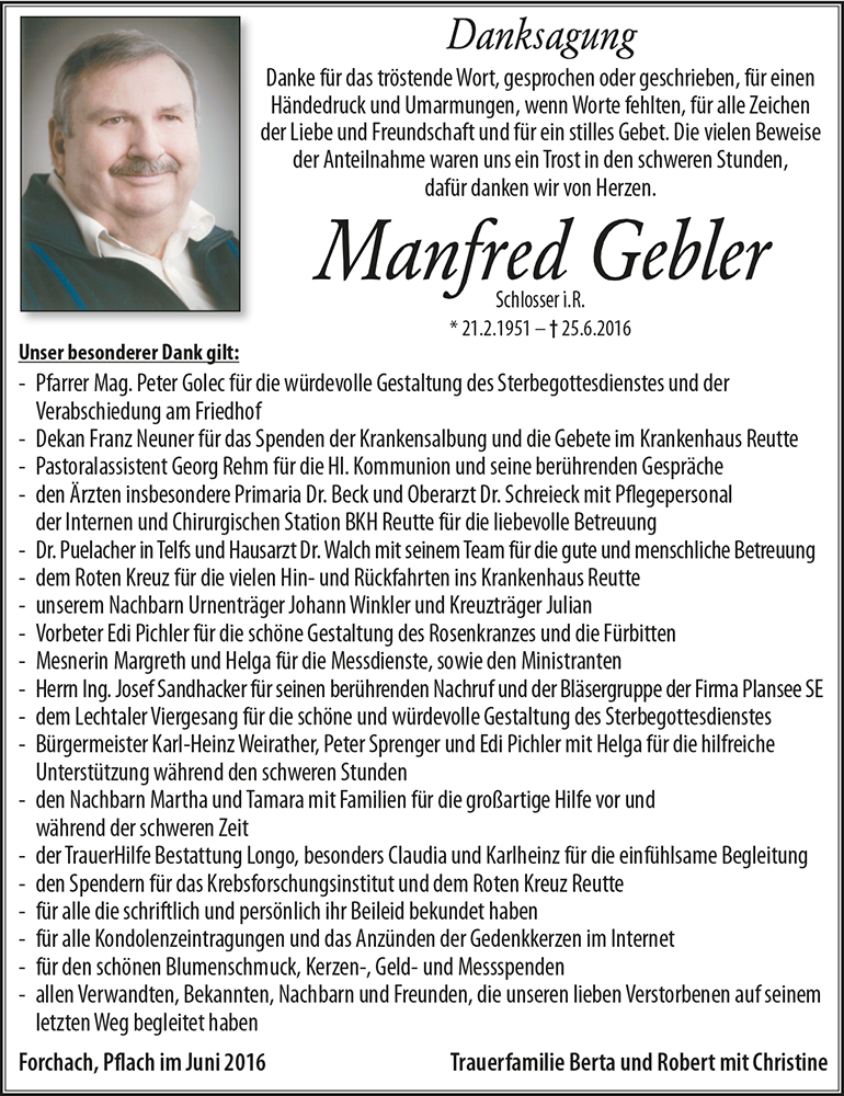 So viele schöne Stunden durften wir miteinander verbringen. Dafür danken wir Dir.