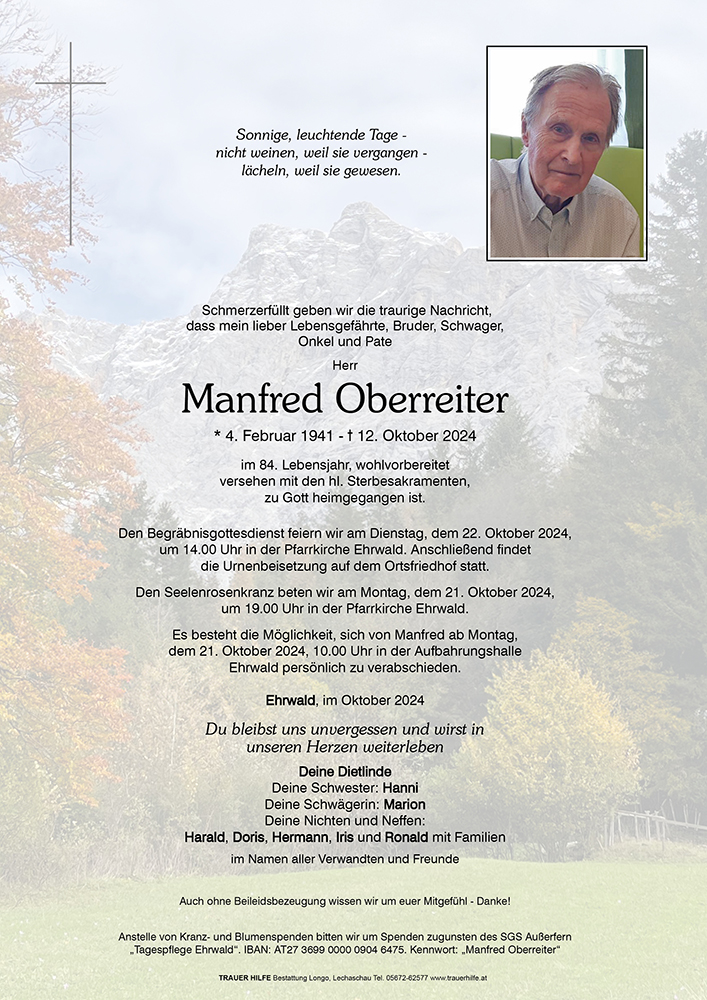 Kondolenzbuch für Manfred Oberreiter