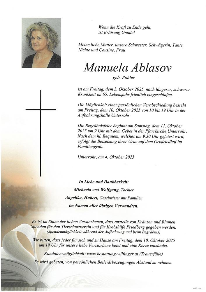 Kondolenzbuch für Manuela Ablasov