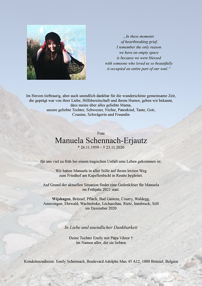 Kondolenzbuch für Manuela Schennach-Erjautz