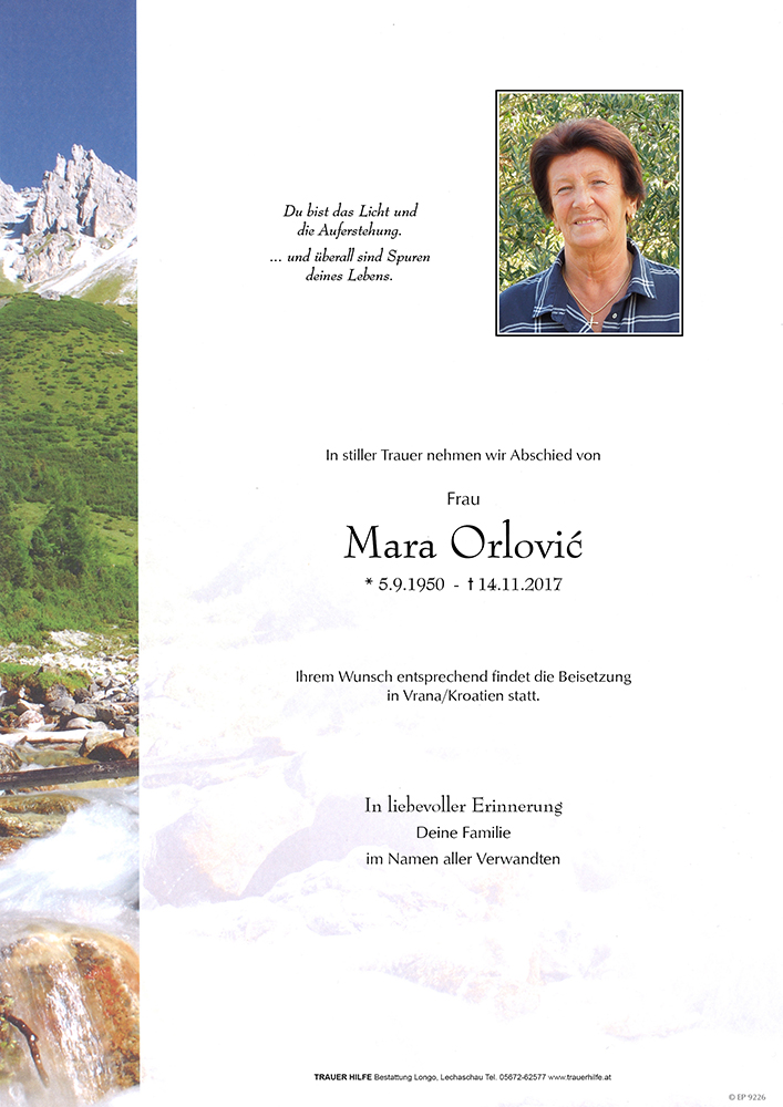 Kondolenzbuch für Mara Orlovic