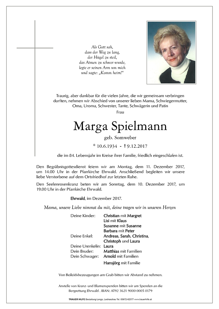 Aufrichtige Anteilnahme am Heimgang Eurer lieben Mutter und Großmutter, entbieten: Ingrid Kraxner mit Familie!