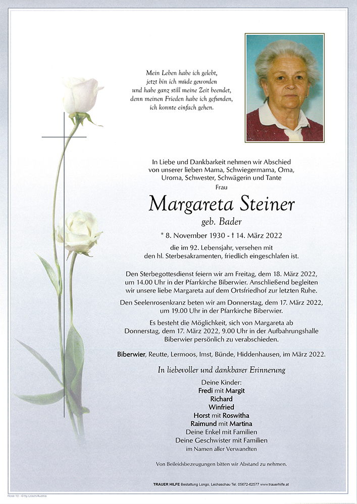 Kondolenzbuch für Margareta Steiner