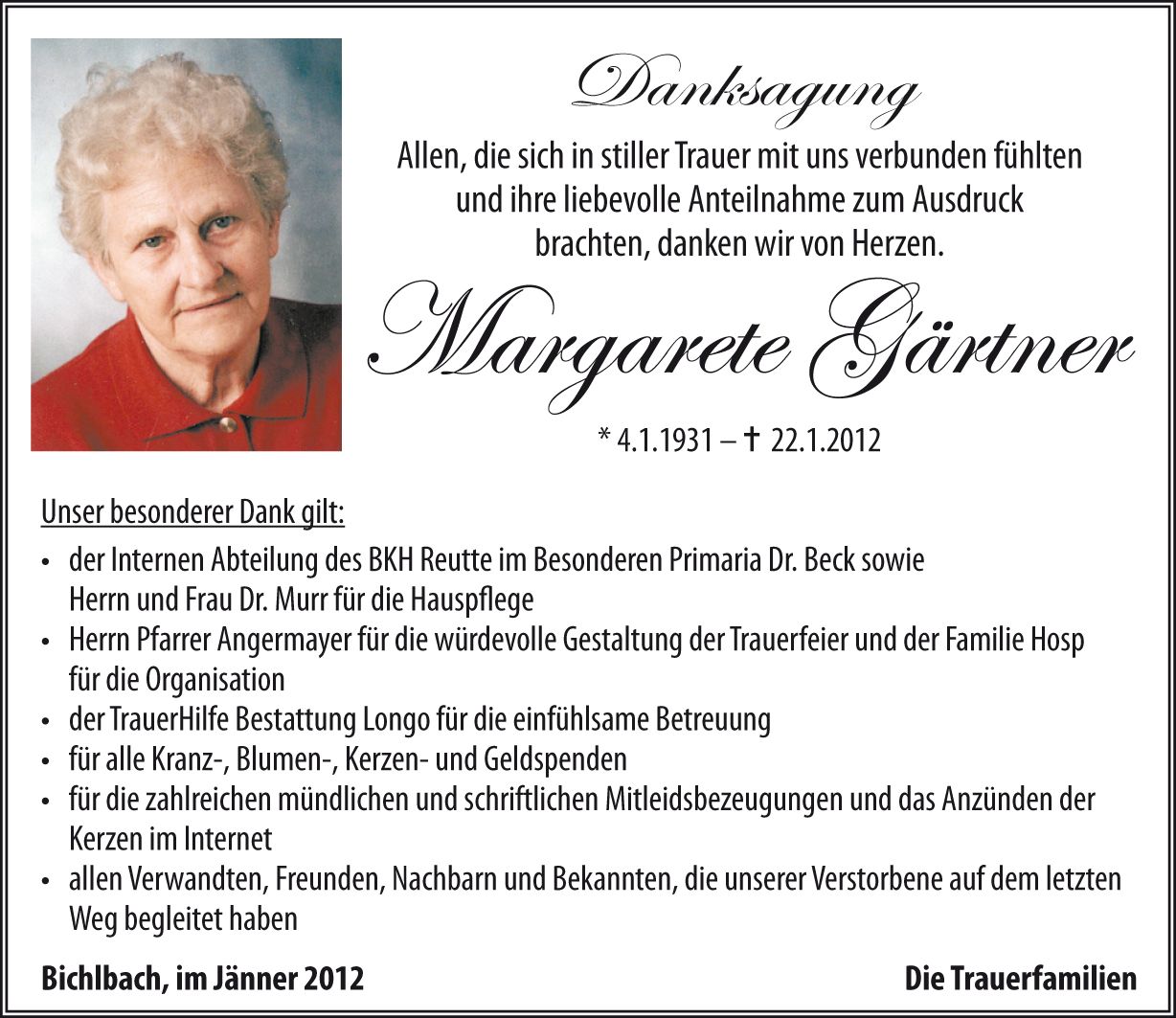 Kondolenzbuch für Margarete Gärtner