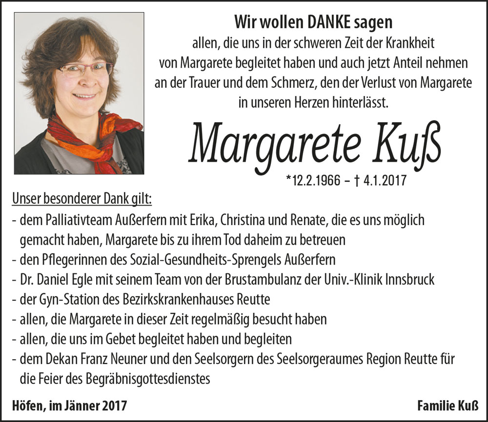 Ihr habt das Geschenk Eurer Margarete in Gottes Hand zurückgegeben . Wir wünschen Euch viel Kraft und Vertrauen in dieser schweren Zeit. In Verbundenheit der Pfarrgemeinderat St. Anna